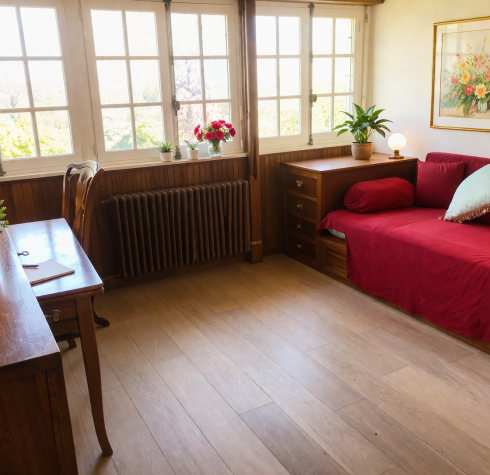 Construite dans les années 1960, la maison développe une surface habitable d’environ 260 m², répartie harmonieusement pour offrir confort et fonctionnalité. Elle comprend cinq chambres, une cuisine indépendante, ainsi que trois salles de bains.